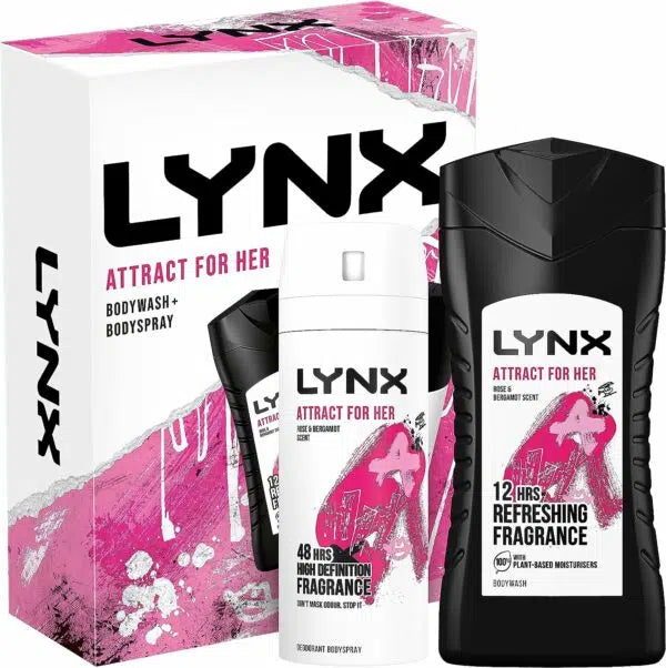 Lynx Attract combines two essential grooming products designed to enhance your daily routine. The bodyspray delivers a bold, captivating fragrance that projects confidence, while the bodywash cleanses and conditions your skin with a complementary scent. Together, this duo ensures you're fresh, clean, and irresistibly appealing from morning through evening. Perfect for men who want a complete fragrance experience with proven appeal.